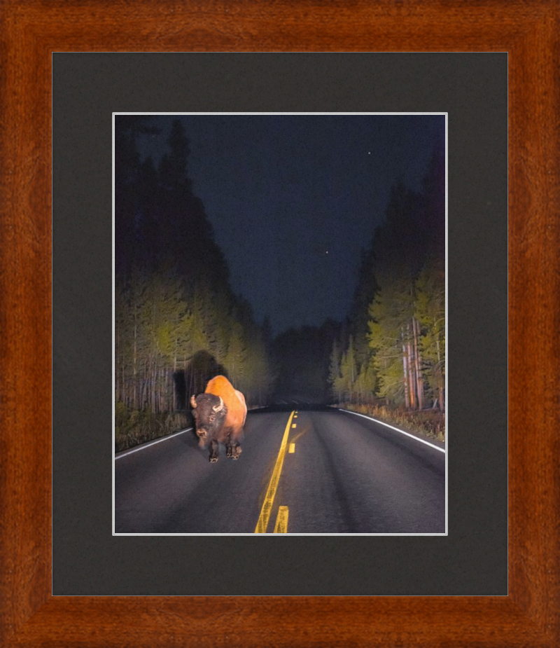 Captured in the dramatic glow of headlights on a quiet night, this image conveys the raw energy of the moment. Please note that natural grain and slight motion blur, more noticeable in medium to large prints, are part of its unique character.